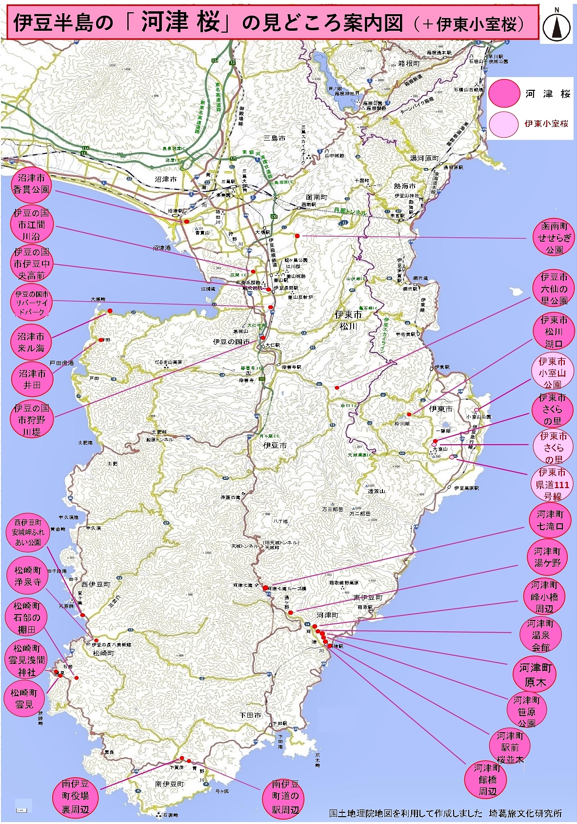 16日以降、伊豆の国市、伊東市、伊豆市や沼津市の見どころで見ごろを迎えてゆきます。