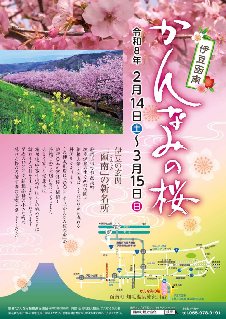 2026年の南伊豆町の「みなみの桜と菜の花まつり」は2月1日から! 続いて7日からは河津町「河津桜まつり」が!さらに15日からは函南町「かんなみの桜」が開催です!